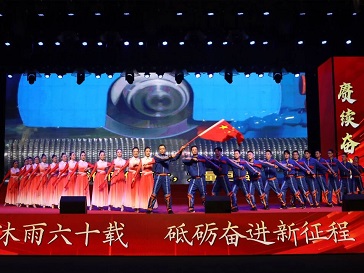 慶祝晚會以“時間軸”為脈絡(luò)、“精神線”為內(nèi)核,由集團(tuán)總部、各權(quán)屬企業(yè)職工及退休職工、秦機(jī)幼兒園兒童等組成的演出隊,通過精心編排的14個節(jié)目,以舞蹈、大合唱、情景劇、微話劇、舞美展示等不同形式,生動再現(xiàn)了秦川人60年來從荒灘創(chuàng)業(yè)到高端智造的壯闊征程。